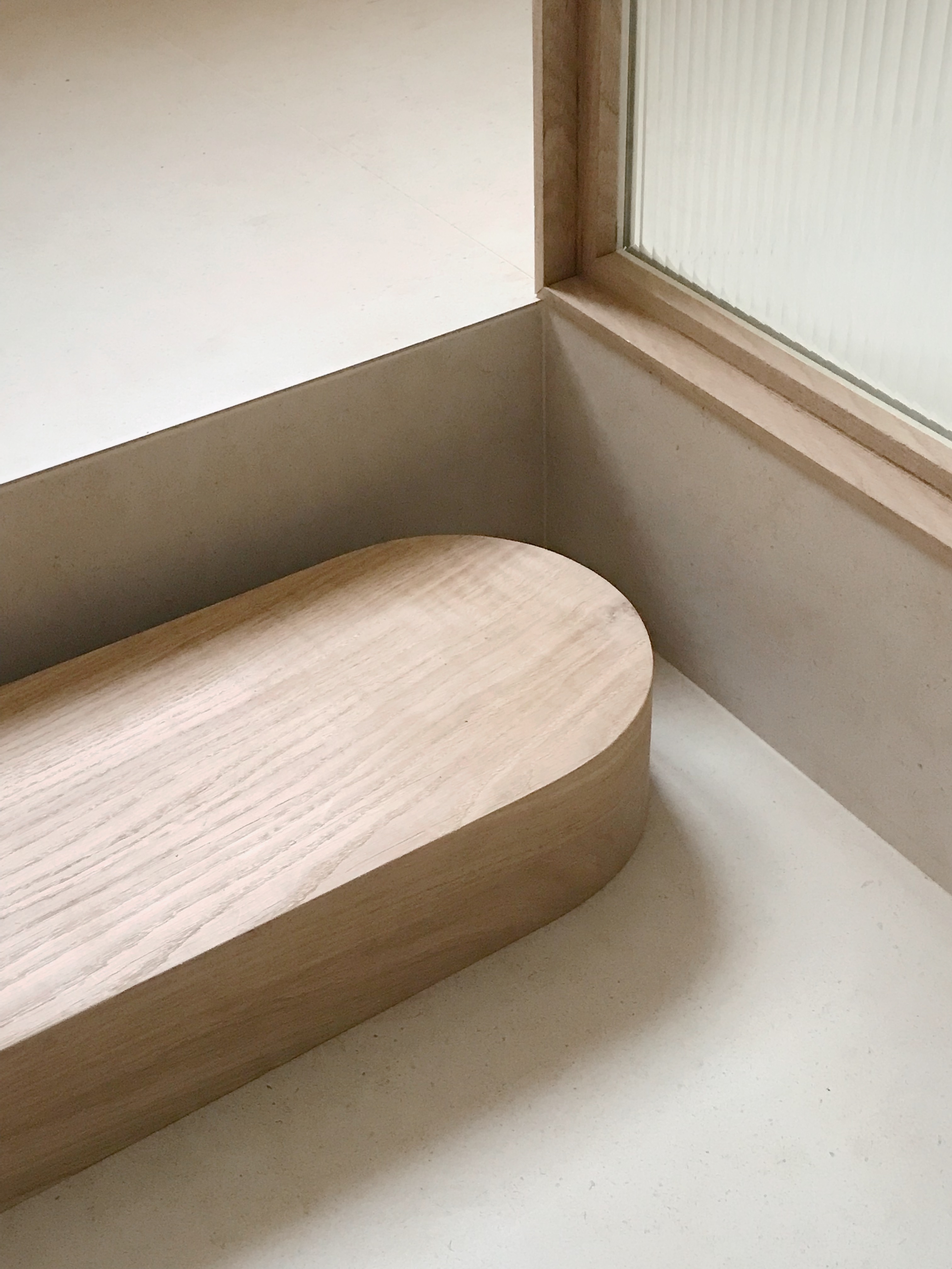 La porte sous tenture à peine entrouverte, nous découvrons une atmosphère aux accents années 30, qui mêle des éléments vintage à un dessin plus contemporain. Les tonalités tabac des céramiques, les matériaux bruts et les lignes franches sont adoucis par les courbes délicates, le naturel du cannage et par les luminaires en laiton qui scintillent tels des bijoux.